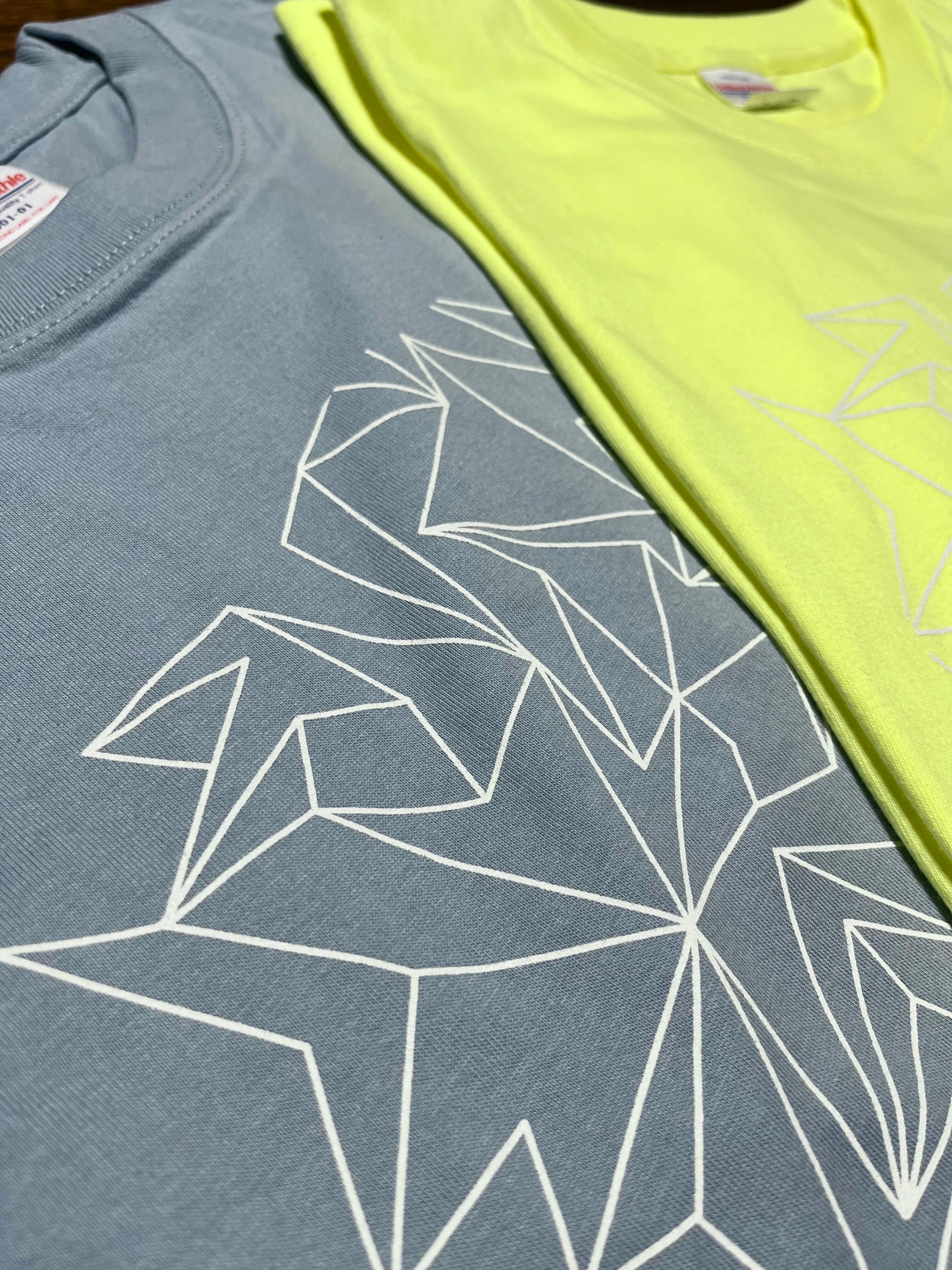 このTシャツは新曲「猛禽類の飛行」を現代的なイメージで描いた幾何学模様(ジオメトリー)をフロントに