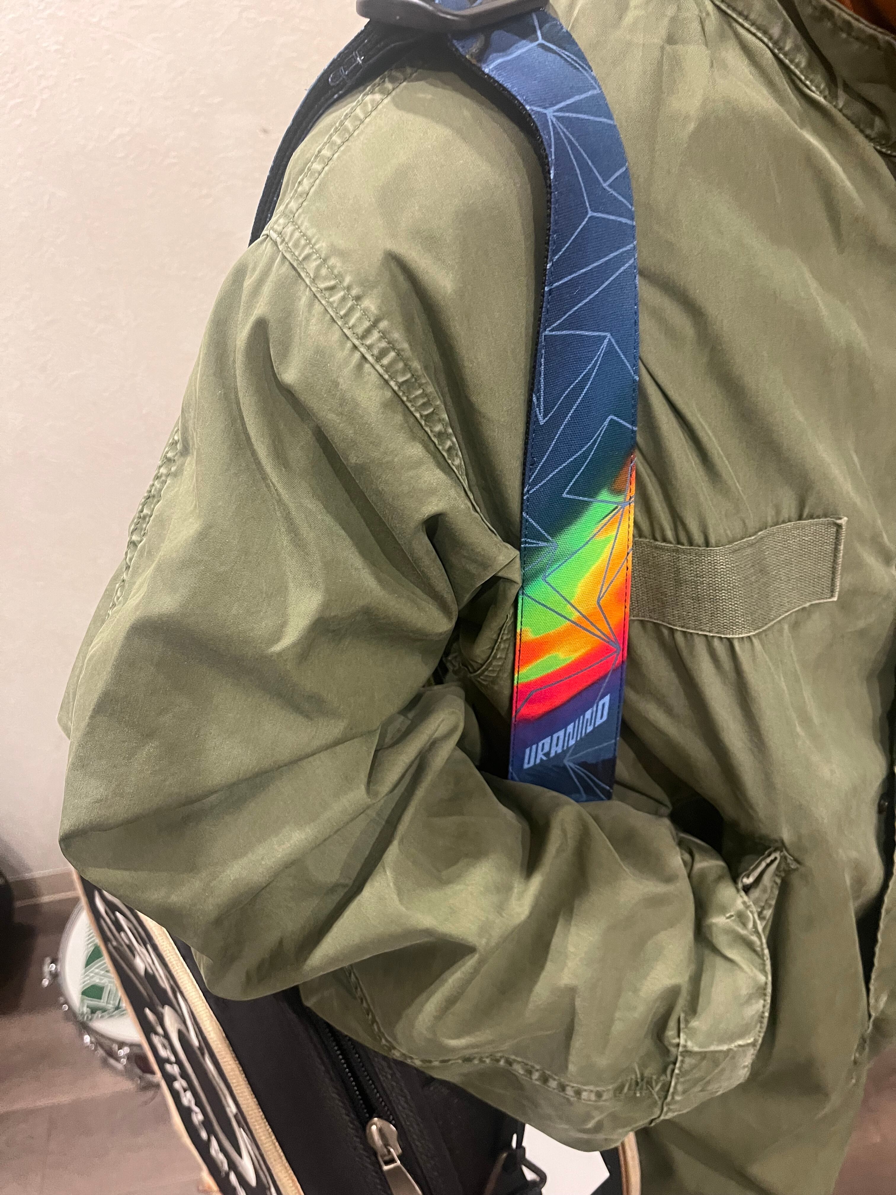 エレキギター、エレキベース、アコースティックギター用のストラップを、お手持ちのバッグなどにカスタマイズして使える新しいグッズの登場です。デザインはDrums小倉、ストラップはギターストラップ専用の制作会社「Spice Note」さんに制作していただきました。